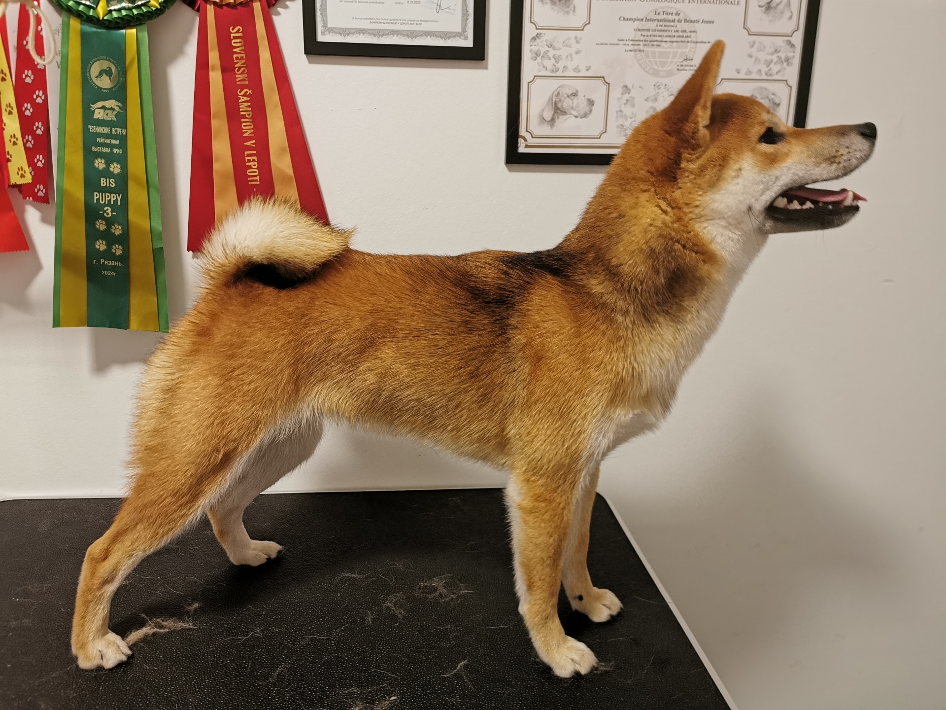 Beni, (Ch, JICB Benzaiten Go Kadzekaoru* 07.01.2024) My sweet, sensitive Russian princess. A very nice, exceptionally well-balanced young female, who brings a lovely sweet temperament and great food/ toy drive with her. She shows herself well in the show ring and loves obedience trials. Which means we will hopefully continue to have lots of fun in the ring and outside.